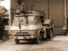 | 初代志摩モータース社長は、車の中でも大きい物を好んでいたらしい、その為か、お客さんも建設関係などの重量級のものが多かったようだ、また時代も発展途上中で、そうゆうダンプなど重機関係がフルに活躍していた時期でもあったのかもしれない。 そのせいもあってか自分でもクレーン車を操り事故で動けなくなった車を助け、休みの日などには、家の棟上、橋の架け替えなどにでかけていたらしい、だから志摩モータースを語るには、このクレーン車たちの存在を、語らないわけにはいけない、そこで、ここでは創業当時の工場とクレーン車の紹介をしておきます。 |